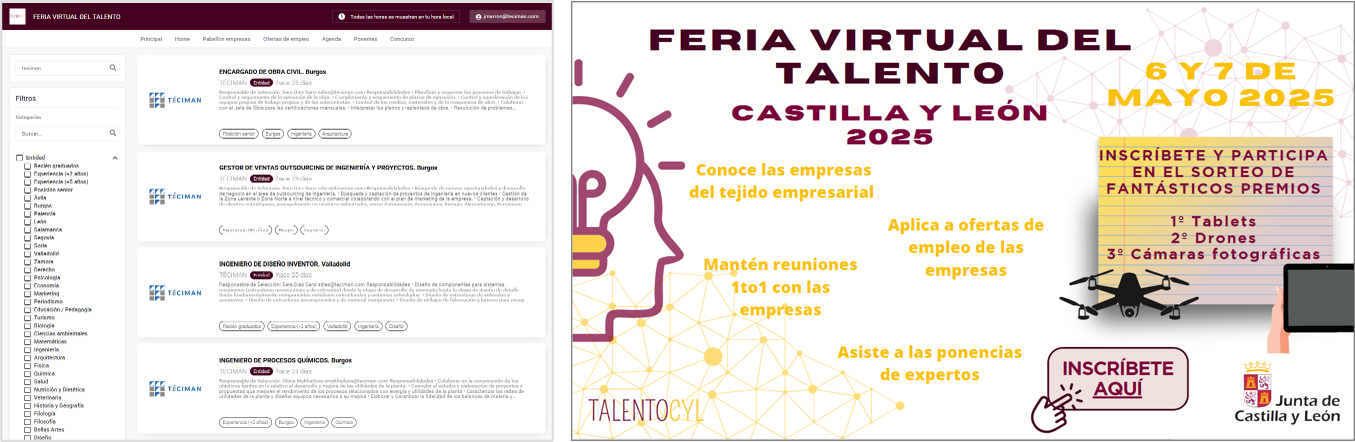 En un contexto en el que la flexibilidad es clave, las ferias virtuales se posicionan como una alternativa muy eficaz para seguir impulsando el empleo y conectando oportunidades. Desde Téciman vemos este formato como un complemento ideal a los encuentros presenciales y una herramienta potente para seguir acercando el talento a la industria.